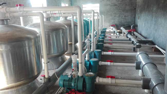 游泳池循環(huán)水凈化設(shè)備機(jī)房應(yīng)由均衡水池間,循環(huán)水泵間、過濾器間、加藥間、換熱器間、泳池消毒設(shè)備間、藥品庫(kù)、控制間等組成,并宜按工藝流程順序排列。