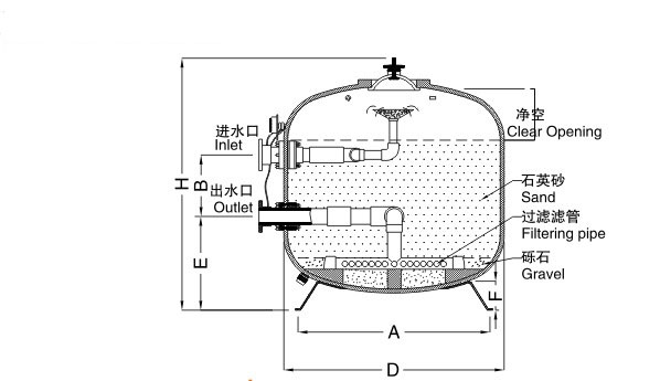 砂缸里一般放置一定規模的石英沙,在一定范圍內石英沙的大小規格不同,在砂缸里,石英沙從上到下、由小到大依此排列,正常過濾時,水是從砂的上層進入,由下層出來。