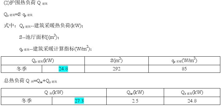 4、游泳池恒溫熱負荷計算
