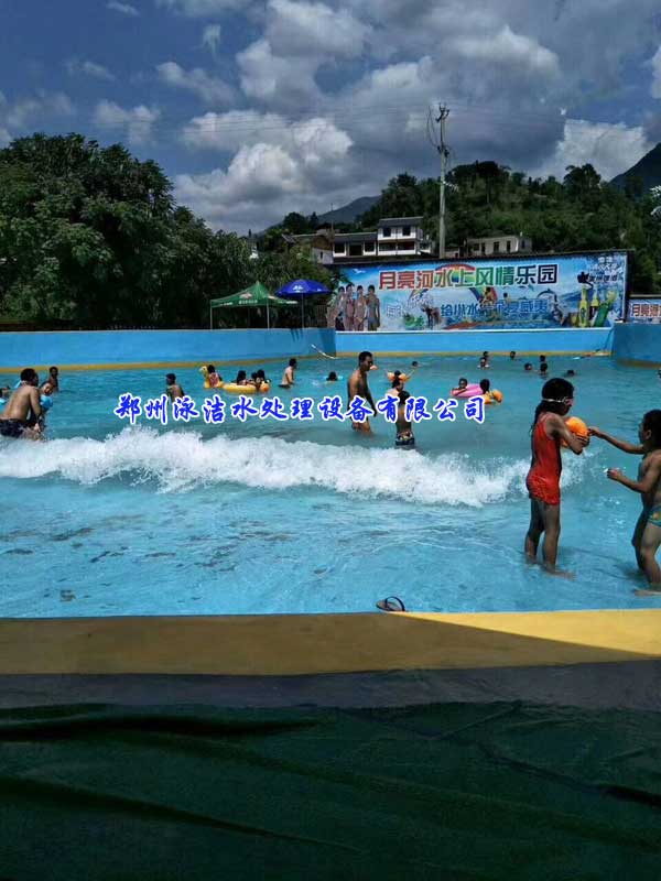 該水上樂園項目采用鄭州泳潔公司自主研發生產的人工造浪設備,PLC智能控制程序,有6-8種浪形,浪高可達1.2米;兒童戲水設備色澤鮮艷,深受兒童喜愛,同時具有很高的安全系數;水處理設備循環效果優良,水質清澈見底,配合氯消毒,水質合格,可以讓游客放心游玩。該項目建成后得到游客的一致好評,并得到投資方一致認可,在此恭賀月亮河水上風情樂園生意興隆~!也祝泳潔公司再接再歷,創造更多佳品~!立足貴州,展望世界~!