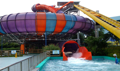 巨獸碗滑梯又稱旋渦滑梯,游客乘坐皮筏,從高13.5米多的平臺口滑下,通過了一段長達幾十米的全封閉的管狀滑道之后,會高速沖入一個直徑為15米的巨碗,在離心力的帶動下,游客好象在太空中旋轉一樣,讓人目眩神迷,最后被吸入碗中間的洞口,游客會享受難忘的滑行體驗,尖叫聲將伴隨滑行的始終。