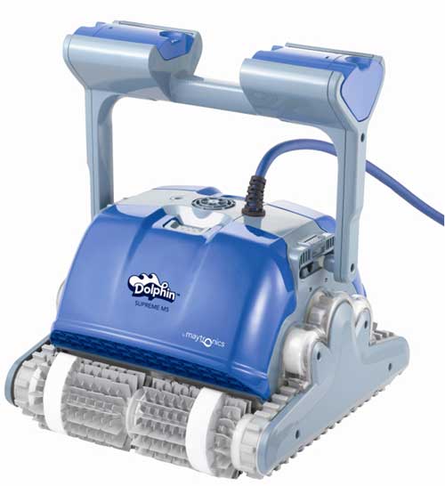 海豚M5自動吸污機可以輕松清潔整個泳池、池底、池壁斜坡以及階梯及水線都能輕松清潔。